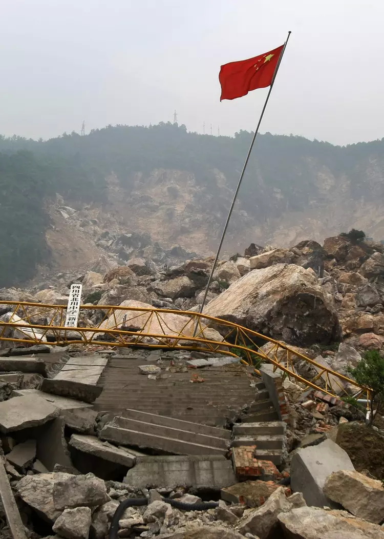 北川县城老城区西面大部分被滑坡体所掩埋(5月19日摄)。有着建县1300多年历史的北川羌族自治县,在这次四川汶川地震中人员伤亡和建筑物损毁最为惨重,位于高山之间美丽的北川县城在顷刻间变成了废墟。截至5月21日12时,北川县遇难者人数已超过8600人。据了解,鉴于北川县城已严重被损毁,北川县城将考虑另行选址重建。新华社记者 张旭东 摄