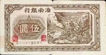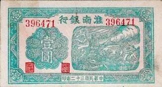 抗战期间,淮北地方银号、江淮银行等部分根据地银行纸钞开始出现毛泽东像,这是最早印主席像的银行,如江淮银行1944年毛泽东像贰拾元券,因品种稀少加上品相完好,是多年来难得一见的好钞券。