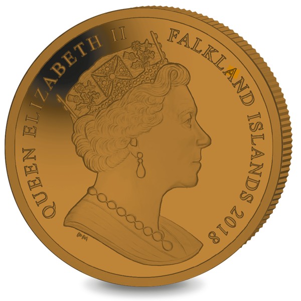 正面包括英国女王伊丽莎白二世的肖像,这是波布乔伊造币厂的独家设计。2018年被认为是围绕女王肖像的传说的一部分。